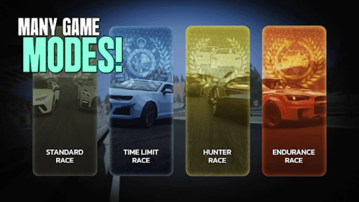 ★ Multiple thrilling racing modes like Hunter, Endurance, or Time Limit
