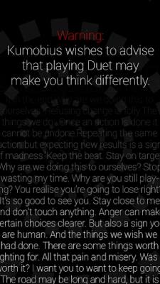 Duet is free to download and play with some advertisements between gameplay. However, you may pay a once-off in-app purchase to unlock “Duet Premium”. This will remove all advertisements from the game, unlock Survival mode for endless score chasing delight, the Daily Challenges feature and four bonus challenge chapters. You will also help support more independent development of video games.
