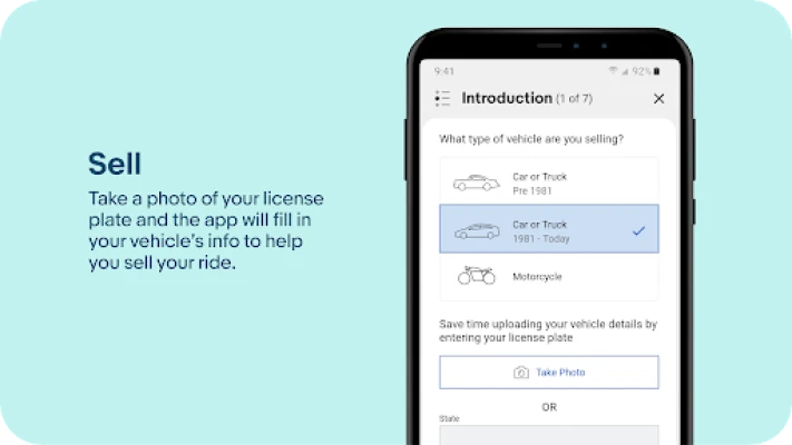 Take a picture of your license plate and the eBay Motors app will do the rest--uploading your VIN number and all the details of your vehicle for you.