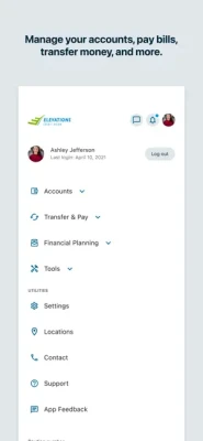 Bank securely and on-the-go with the Elevations mobile app. Our digital banking experience will help you manage your money, from payments and transfers to depositing checks with the tap of a button. Activate and manage your cards with configurable alerts, rewards redemption and travel notices. This enables you to use your card without interruption so you can focus on enjoying your trip! Keep an eye on your financial health with balance and transaction notifications, credit health monitoring, and budgeting. You can expect the same great service from our mobile app as you would receive in branch. Our goal is always to support your financial wellness.