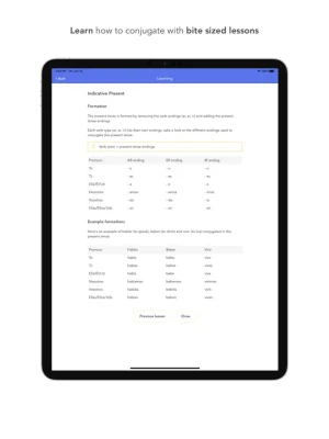 Master your Spanish conjugation with Ella Verbs! Work your way through 38 levels of bite-sized lessons & quizzes, learning 16 tenses and covering over 2,300 verbs.