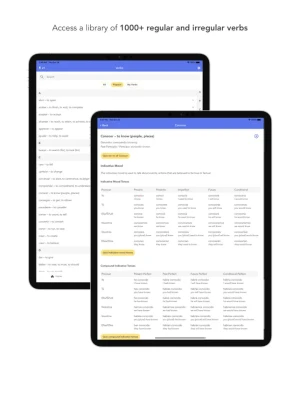 - Verb conjugation tables for 2,300+ verbs (101 for free), with full English translation, synonyms and highlighting of irregulars. You can even search by conjugation!