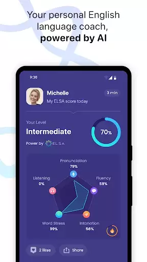 Do you feel like speaking English is no piece of cake? Luckily, ELSA (English Language Speech Assistant) is here to help. ELSA is an AI app with personalized English language lessons just for you. Start improving every day with your own personal practice partner. You’ll be fluent in English in no time.