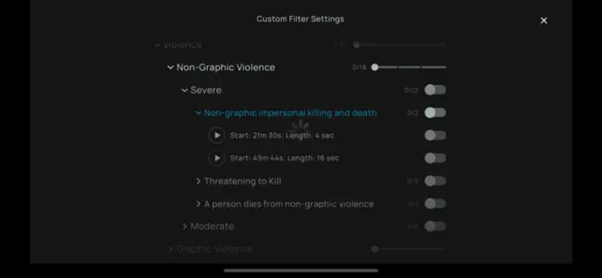 Violence and nudity filters are also available for a growing library of thousands of fully tagged shows. In addition to language, violence, and sexual content, Enjoy can also filter drugs, alcohol, and a dozen other potentially triggering themes (like bullying, suicide, disturbing images, etc.). It can mute the sound, skip sections entirely, and black out or blur the video.