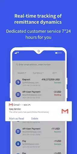 1.Faster speed, higher exchange rate, lower handling fee: Provide real-time exchange rates based on the market price, and match the remittance merchant who provides the lowest fee for you according to the Epay remittance network system; funds can arrive within 1 hour.