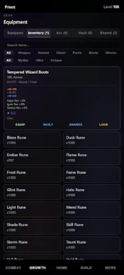 Pick from five classes — Knight, Wizard, Archer, Assassin, or Priest. Each has unique skills, gear, and playstyle. Build around stats, rune combos, artifacts, enchanting, and crafting to shape your perfect setup.