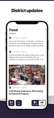 DISTRICT UPDATES In the Live Feed is where you’ll find updates from the administration about what’s going on in the district right now. Whether that’s celebrating a student’s success, or reminding you about an upcoming deadline.
