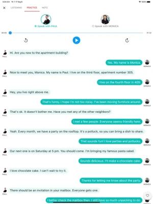 - You can listen audio and speak again. Easy to use and simple. It's really good for beginer.