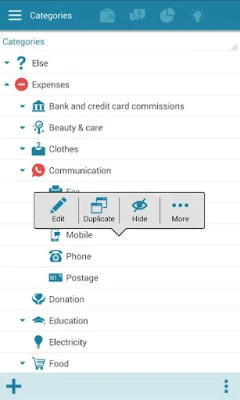 Press the menu and then categories. Select your category, for example " car expense ". Edit the budget and select the type of budget: fixed budget, summarized budget, mix budget and so on. You can define a different budget for each period.