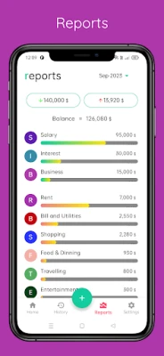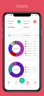 Track your category wise expenses and incomes on history and reports screen. you can track your yearly income and expenses as well.