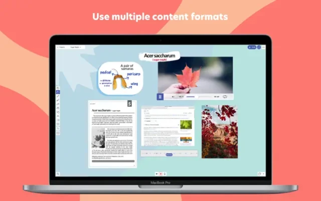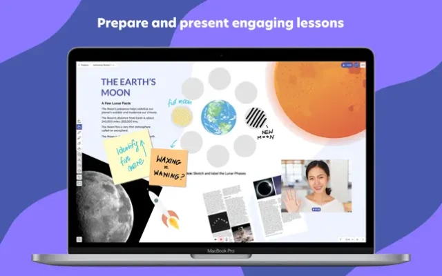 • Enrich your materials with images and GIFs, Sticky Notes, Clipart, 3D Models, Shapes, Web Browser, Equations, hyperlinks, text boxes, different backgrounds and patterns, pen and pencil drawings, highlights and more.