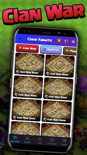 Clash Fanatic is the best base layout and strategy guide app for Clash of Clans. The app features copy maps for every level of Town Hall and Builder Hall, including farming maps, hybrid maps, clan war bases, progress bases and funny/artistic maps. Top army strategies with copy troop feature to teach you the strongest attacks for each level. Quick attack and defense tips provide easy tips you can utilize right away to help improve your clashing. All with a very easy to use design and interface. ?