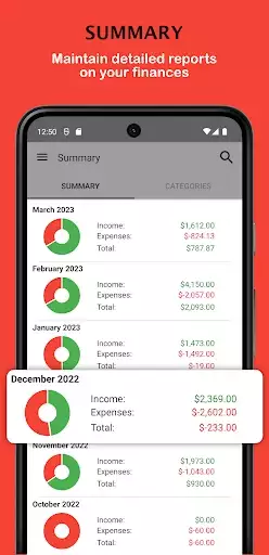 In Fast Budget, you have many tools for managing better your money, like various types of charts or a useful calendar.