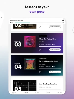 • Personalized Learning Path - Choose your instrument and your favorite genre to customize your learning experience.