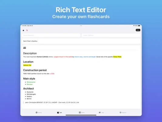 Some of Flash Cards' features include: