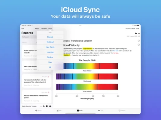 Your data will be backed up automatically to your iCloud account. That means all your stuff — flashcards, tags, preferences, and more — is safe, up to date, and available on all your devices.