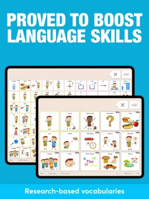 The app is fully customizable and can be utilized to build language skills and grow with a person's communication, supporting both beginning and advanced communicators.