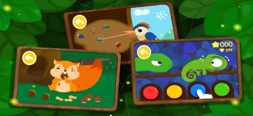 Greet the restless woodpecker, the handsome peacock, the playful squirrel, the ambitious tiger and the color-changing chameleon in their beautiful forest. See what exciting games they have made just for you. Ready! Set! Go!