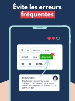 Pour cela, pas besoin de retourner à l’école ou de revoir toutes les notions de grammaire. Nous avons créé une application qui te permettra de reprendre rapidement confiance en ton orthographe.