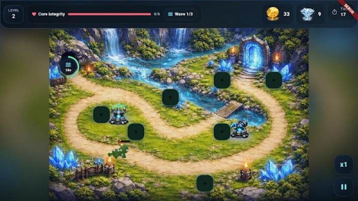 Enter Frostfall TD: Crystal War, a strategic tower defense set in a frozen world powered by crystal energy. Build and upgrade unique towers, control the battlefield with frost and shockwave mechanics, and defend the Crystal Core against relentless enemy waves.
