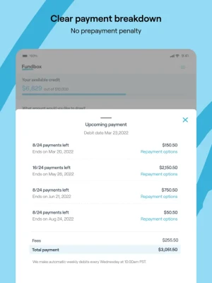 * Beautiful new home screen * Faster, easier navigation * Complete details of historical payments * Complete details of your next scheduled debit, including a breakdown of payments included in your next debit * Coming soon… more frequent and exciting updates to the app because you deserve easy, fast access to funds wherever and whenever your business takes you