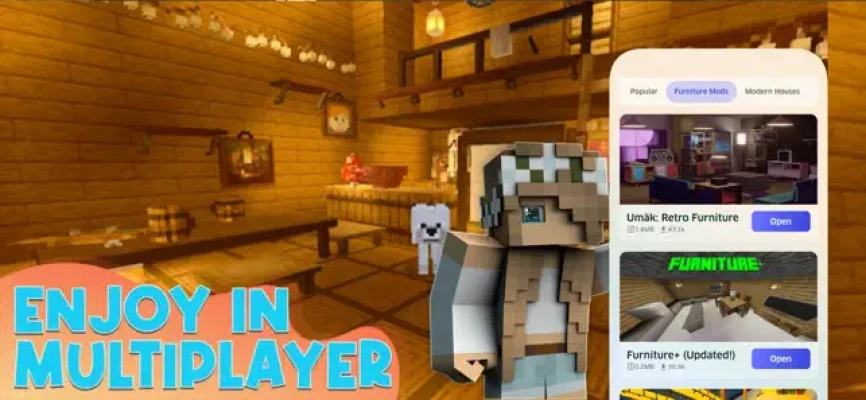 In our app, we offer the most popular furniture addons for Minecraft.You can also use the addons in multiplayer with friends, if all friends have the same addon installed.