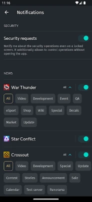 Your Gaijin account security and news of all Gaijin projects in one app.