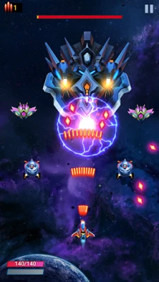 + Shoot and destroy: Navigate through different galaxies and destroy waves of alien enemies, including challenging bosses. Use your powerful weapons and shields to survive.