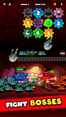 Merge gears to boost production and upgrade your war machine. Tanks shoot automatically, engaging in epic battles against enemy forces. Build the ultimate gear factory to unleash an endless army of tanks and fight through waves of tank enemy units in an explosive war. Dominate the gear battlefield with smart tactics and unstoppable firepower.