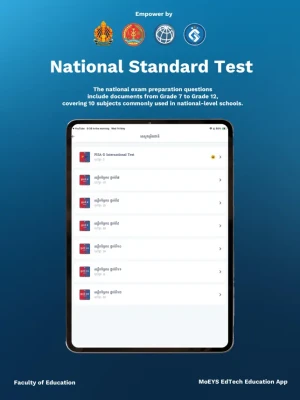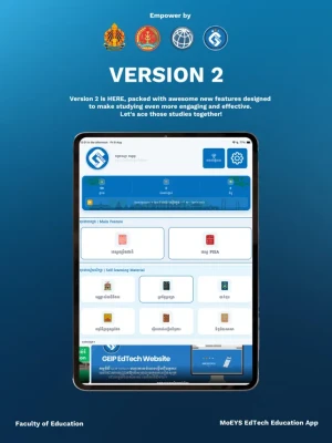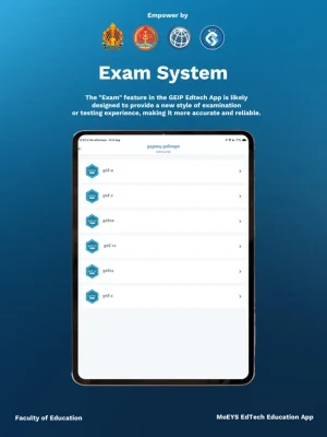 The GEIP EdTech Program aims to revolutionise education by enabling students to engage in self-directed learning through a digital platform. It provides access to self-learning worksheets for all 10 secondary education subjects, including Khmer Literature, Maths, Biology, Physics, Chemistry, History, Geography, Moral and Civic Education, and English. The Ed-Tech app is meticulously developed to offer adaptive learning experiences, transforming traditional teaching methods and enhancing learning outcomes. (MoEYS) in Cambodia supports this initiative to advance education through digitalisation.