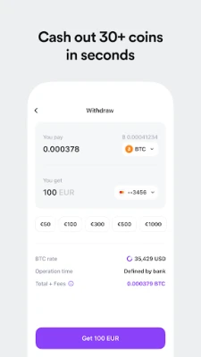 Cash-out crypto anytime, instantly: send crypto straight to your bank in seconds.