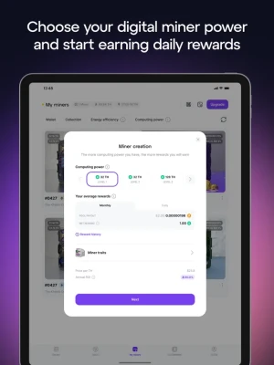 Dive into the future of mining with GoMining's digital miners. Our miners are not just digital assets, they are your gateway to participating in the mining process without the complexities of managing physical hardware. Each digital miner represents real computing power, enabling you to collect daily rewards directly to your wallet. With options ranging from 1 to 5000 TH/s, scaling your mining operations has never been easier or more accessible.