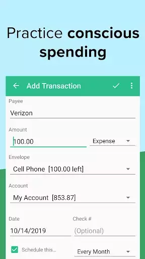 • Roll unused funds over to the new month to reward your amazing self-control!