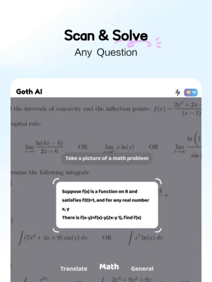 At Goth AI, we believe in building a strong foundation for learning. That's why we provide free step-by-step solutions that guide you through every math problem, ensuring you master the fundamentals. When you encounter challenging steps,Goth AI provide detailed explanations and explanations, turning every solution into a valuable learning opportunity. With Goth AI, math becomes an exciting journey of discovery and growth.