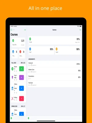 The Grade Control app is a convenient way to track school assignments, courses, and your GPA. GPA is calculated for you, so you'll always know what your grade is and what grade you need to reach your goal.