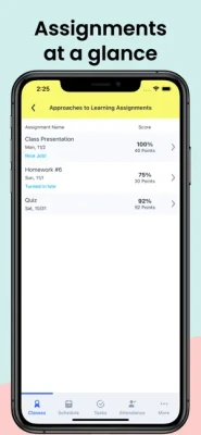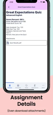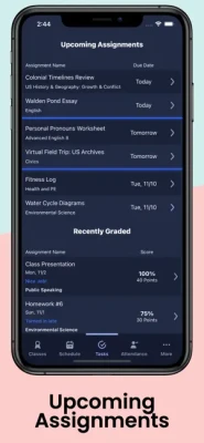 - Shows recently graded assignments so parents and students can work with teachers as needed