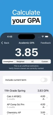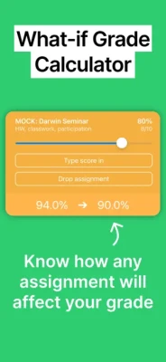 Included is an awesome grade calculator. Instantly see what happens if you get an 85% on that next test. No need to figure out how your grade is calculated or how the weighting system works -- this app does it for you.