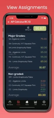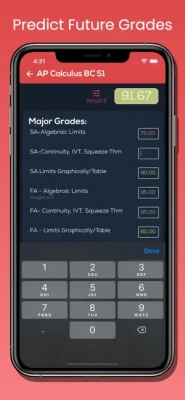 -Built in what-if calculator to predict and calculate future grades so students can prepare for upcoming assignments.