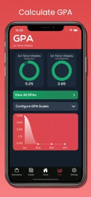 -Calculates and displays weighted and unweighted GPA for current and previous nine weeks.