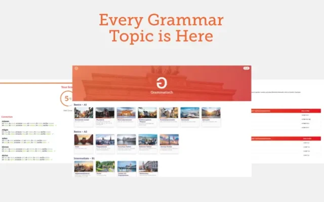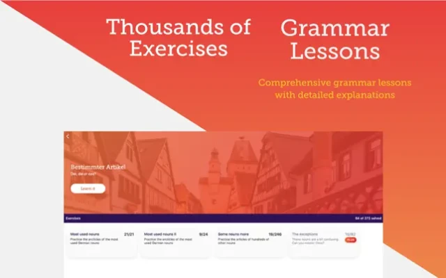 Learn German for real with Grammatisch. The app has thousands of exercises as well as summaries, tables and lists for the key topics of the German grammar. You don’t need to take leveling tests, just pick any topic and start learning it. You can solve dozens of exercises in a row to memorize concepts and grammar rules in a short time. When you finish an exercises session, you can check your score and a detailed correction of your answers.