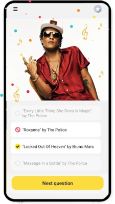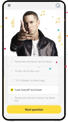 🔹 Listen to real music from artists such as the award-winning Billie Eilish, the renowned Ariana Grande, Cardi B, classic tunes from Queen, and Taylor Swift, Bruno Mars, Beyoncé, Eminem, Rihanna, Adele, BTS, Drake, The Weeknd, Linkin Park, and more in the world’s most popular music quiz game like. Guess the correct artist and song title faster than everyone else to win! We know all their compositions!