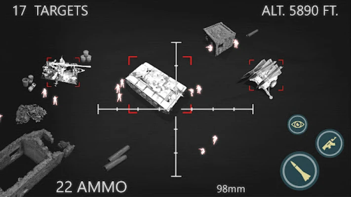 State of the Art Arsenal: Arm your airplane gunship with a diverse array of weapons, including machine guns, missiles, and bombs. With night vision, infrared, and heat sensors, you can target enemy troops even in the darkest of night.