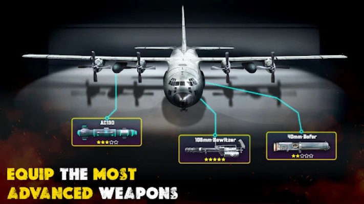 Airborne Attack Dominance: Assume the role of an elite gunner operator and take command of the AC 130 gunship. Your mission is to establish air superiority and protect your troops at all costs by providing air support shooting.