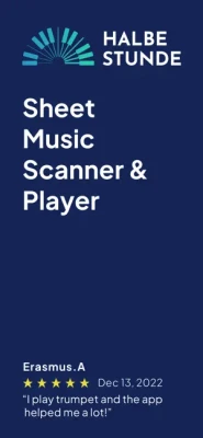 With our free version you can learn to play more than 30 songs in the Gallery and scan or upload 6 music pieces in total. With Halbestunde Pro, you get access to unlimited scans and uploads, all songs in the Songs Gallery and to all of our main features, such as notes transposing and export to midi & xml.