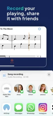 Play the music piece and save a record to listen and take notes. Share it with friends or with your music teacher.