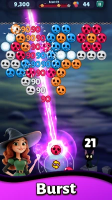 - Aim, match, and pop colorful bubbles to break the curse