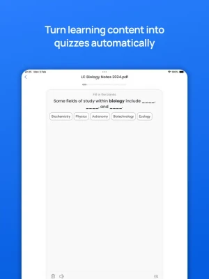 Our app stands out with focused automation that prioritizes quality and efficiency. We believe that less is more: no unnecessary features, no complicated settings. Just two clicks and in 30 seconds, you're ready to learn your notes in an entirely new way.