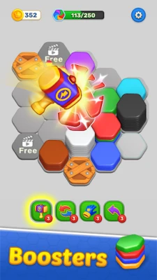 A new twist on sort puzzle games that will keep your brain sharp and your fingers busy! Arrange colorful hexagonal tiles to stack, sort, and solve puzzles while exploring unique levels and renovating beautiful areas.