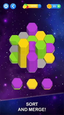 The gameplay is easy to learn but hard to master. Your goal is to sort hexagon tiles by color, manage space wisely, and complete each merge hexa puzzle using logic and strategy. As you progress, the sorting game becomes more challenging, making it a perfect brain training puzzle game for players of all ages.