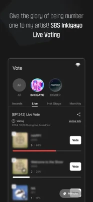 - The results of the vote you participated in through HIGHER will be reflected in the selection of the weekly No.1 in SBS INKIGAYO. Participate in the weekly SBS INKIGAYO Real-Time Voting and support your artist